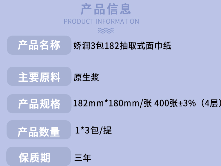 嬌潤(rùn)3包182抽取式面巾紙